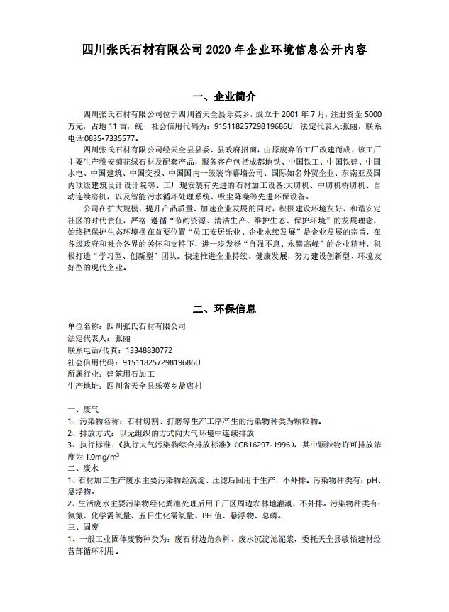 世界杯官网-世界杯(中国)一站式服务官网 2020年企业环境信息公开内容
